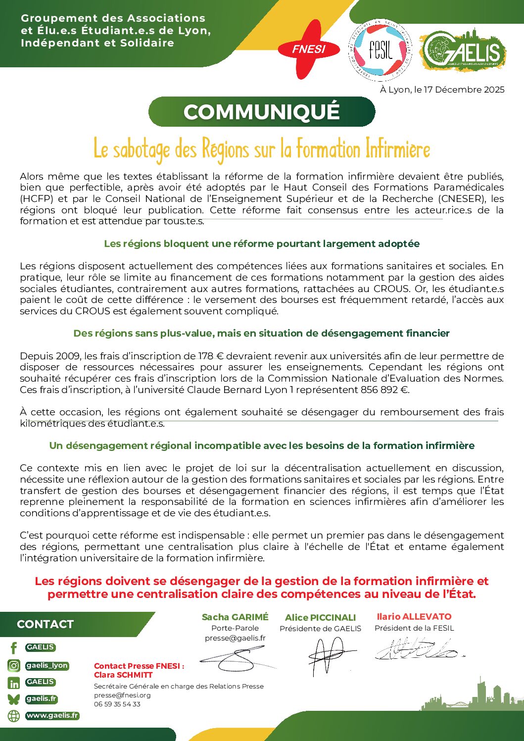 GAELIS, la FNESI, la FESIL et leurs associations membres dénoncent l’implication des Régions dans ces formations.